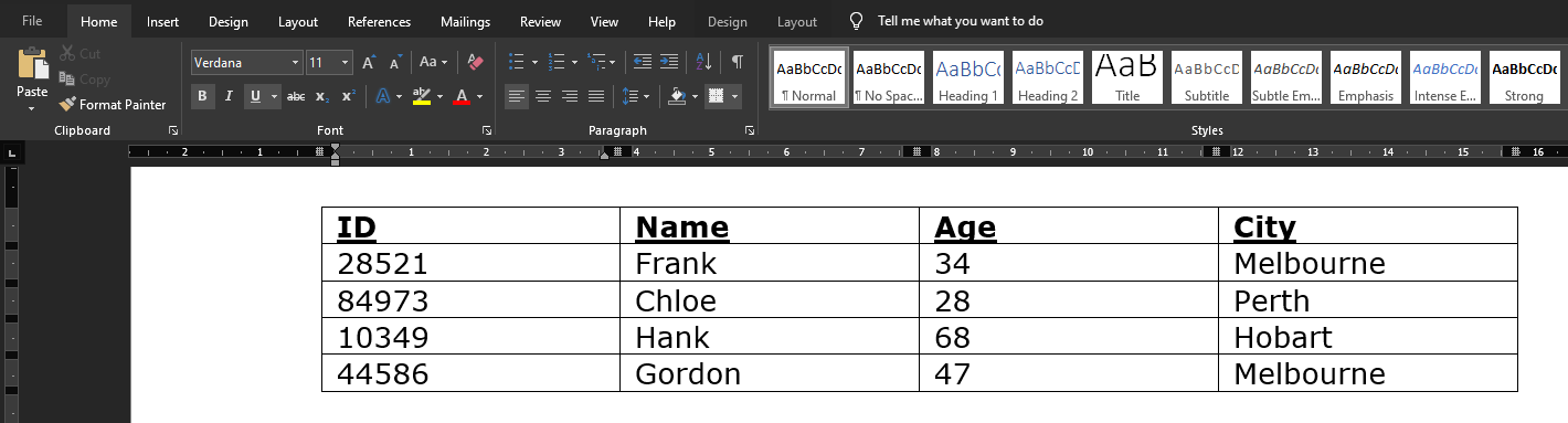 - The keys of each Object will refer to the tags used inside the List in the docx file (id, name, age, city).