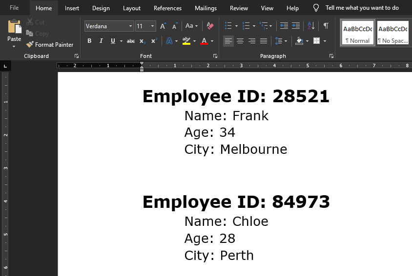 A very useful feature is to be able to template repetitive sections. Perhaps the document is suppose to contain the profiles of some employees. Let’s see how we can use lists to do this: