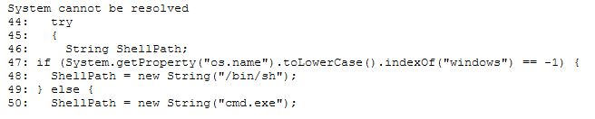 This can be resolved by unzipping the war file, removing the System call, and replacing the OS check with correct shell path: