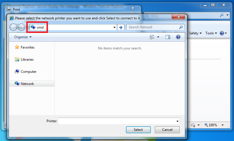 Once we have this new window open, we need to type cmd in the location bar and click enter: